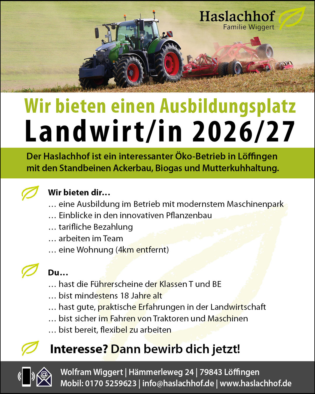 Bewirb dich jetzt für einen Ausbildungsplatz auf dem Haslachhof.